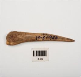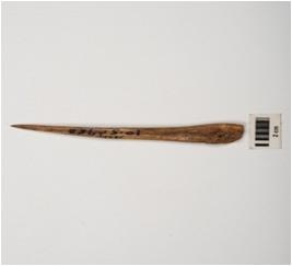 | Description / विवरण | A arrowhead made of bone, one end is sharp pointed and other is thicker, brown in colour and well polished surface. |