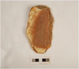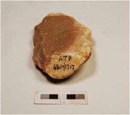 | Description / विवरण | A side scraper made on end struck quartzite flake with flake scars on dorsal side, prepared platform, diffused bulb on vental side and regularly retouched edges. |
