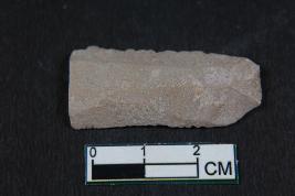 | Description / विवरण | A fragment of a blade having two dorsal ridges with bulb of percussion. It has smooth surface. |