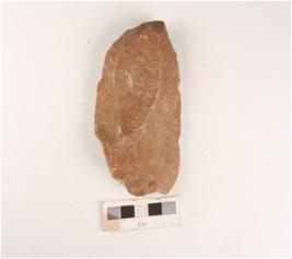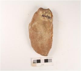 | Description / विवरण | A unifacial side scraper on a side struck flake with flake scars on dorsal, bulb on ventral, wide edge with irregular retouches on working edge. |