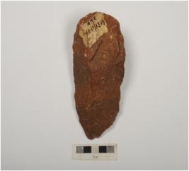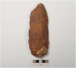 | Description / विवरण | A side scraper made on quartzite flake, flake scars on surface and retouched edges. |