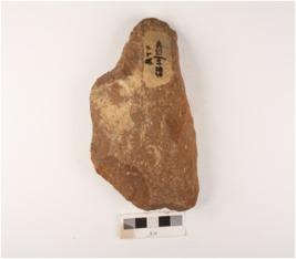 | Description / विवरण | A side scraper with cortex on dorsal side, aternate flake scars on dorsal flakes and prominent bulb on ventral. |