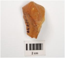| Description / विवरण | A chert core with blade, flake scars and cortex on surface. |
