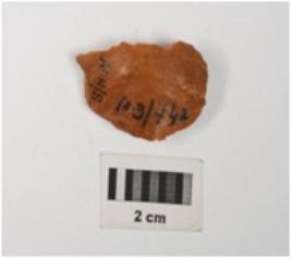 | Description / विवरण | A chert flake with flake scars on dorsal diffused bulb on ventral and use wear marks on one edge. |