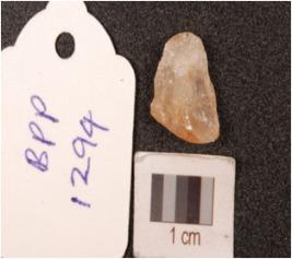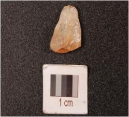 | Description / विवरण | A micro end scraper, prepared platform, single ridge on dorsal and uneven surface. |