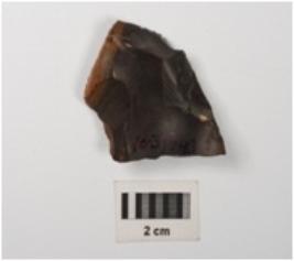| Description / विवरण | A chert flake with flake scars and ripple marks on dorsal bulb on ventral and irregular retouches on edges. |
