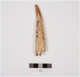 | Description / विवरण | Point made of antler horn with polished surface, hollow from within, circular in section, pointed one end and cream in colour. |
