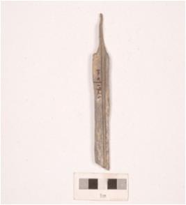 | Description / विवरण | Arrow head with stone tool, grooved lines on bottom and smooth surface. |