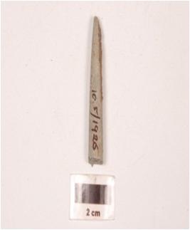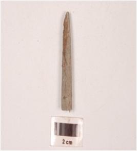 | Description / विवरण | Fragment of a stone point slightly broken at one end, pointed at other end, rectangular in section and smooth surface. |