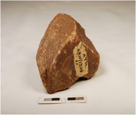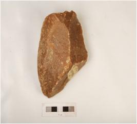 | Description / विवरण | A chopping tool made on quartzite with flake scars on both side and partly intact cortex on one side. |