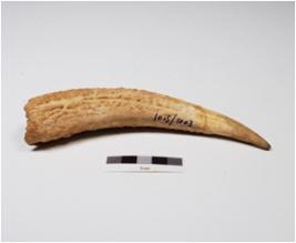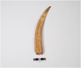 | Description / विवरण | Point made of antler horn with partly polished and indented surface, hollow from within, partly chipped off surface and circular in section and pointed end. |