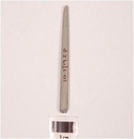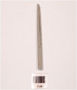 | Description / विवरण | Fragment of a stone point rectangular in section, slightly broken both end and smooth surface. |