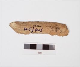 | Description / विवरण | Bone scraper with polished surface and use wear marks on cutting edge. Light brown in colour and rectangular section. |
