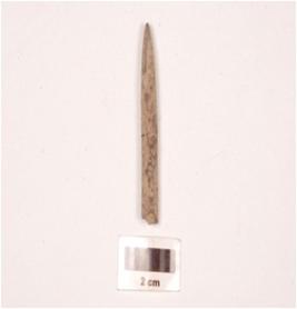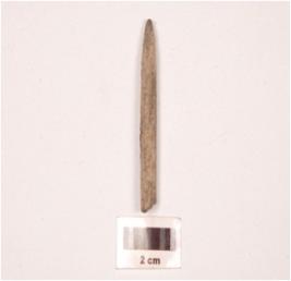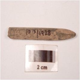 | Description / विवरण | Fragment of a stone point slightly broken at one end, pointed at other end and rectangular in section, smooth surface. |