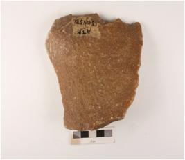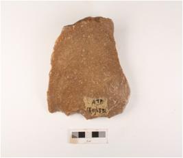 | Description / विवरण | A cleaaver made on split pebble, acternate flaking, made on end struk flake wavy and broad working edges and prominent bulb on ventral. |