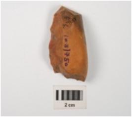 | Description / विवरण | A side scraper on end struck flake with flake scars and irregular retouches on cutting edge. |