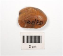 | Description / विवरण | An end scraper, made on chert with ripple marks on both sides, conical in shape with blunt cutting edge. |