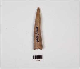 | Description / विवरण | Point made of antler horn with polished surface, pointed one end and circular in section. |