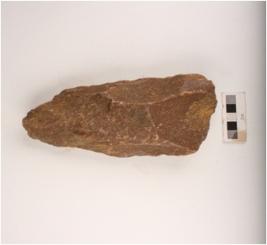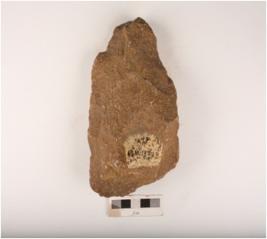 | Description / विवरण | Handaxe made on quartzite flake by block on block technique, flake scars on sides and retouches along cutting edges. |