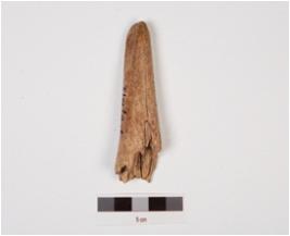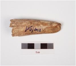 | Description / विवरण | Chisel of antler horn with polished surface, flat at working end, crack on surface and light brown in colour. |