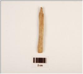| Description / विवरण | Fragment of bone point, both ends are broken, rough surface with polished surface. |