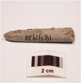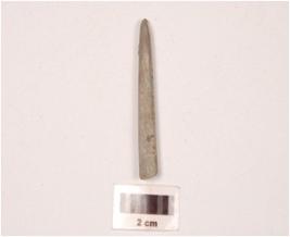 | Description / विवरण | A fragment of a stone pointe circular in section, slightly broken at one end, pointed broken at other end and smooth surface. |