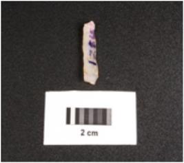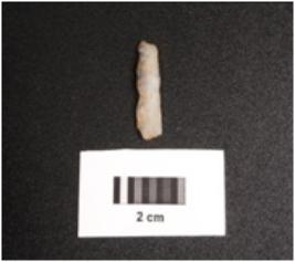 | Description / विवरण | Microlithic blade on chalcedony with prominent mid ridge on dorsal, triangular in section, use wear marks along the cutting edges and diffused bulb. |