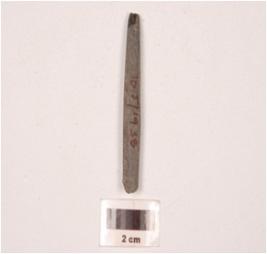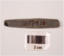 | Description / विवरण | Fragment of a stone point slightly broken both end, circular in section and smooth surface. |