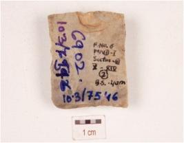 | Description / विवरण | Fragment of a blade made on chert double ridge on dorsal side, retouches along the sharp edges and trapizoidal in section. |