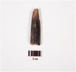 | Description / विवरण | Bone pont with polished surface, circular section and pointed one end. |