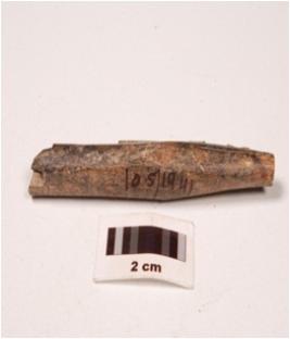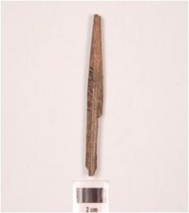 | Description / विवरण | Fragment of a stone point circular in section, slightly broken both end and smooth surface. |