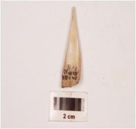 | Description / विवरण | Fragment of a bone point with plano-convex in section, slightly broken at one end, pointed at other end and polished surface. |