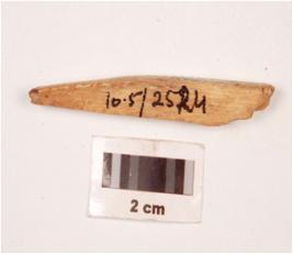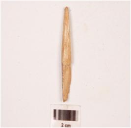 | Description / विवरण | Fragment of a bone point with slightly broken on end and pointed broken other end, polished both sides and smooth surface. |
