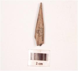 | Description / विवरण | Fragment of bone point with plano-convex in section, slightly broken at one end, pointed at other end, polished both sides and smooth surface. |