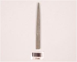 | Description / विवरण | Fragment of a stone point slightly broken at one end and pointed broken at other end, rectangular in section and smooth surface. |