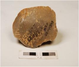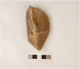 | Description / विवरण | Fragment of quartzite core with prepared platform, flake scars on the surface and cortex intact on one side. |