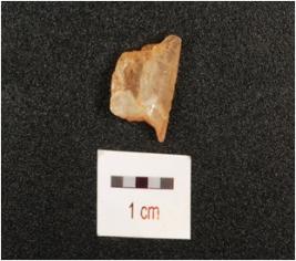 | Description / विवरण | Debitage made on quartz. Prepared platform and use wear mark along cutting edges. |