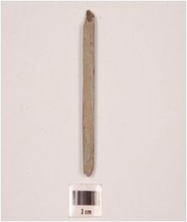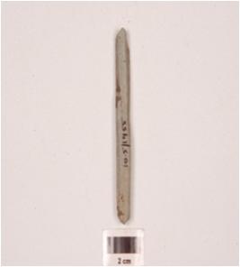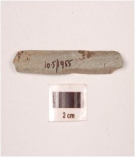 | Description / विवरण | Fragment of a stone point slightly broken both end and roughly plano-convex in section and smooth surface. |
