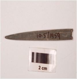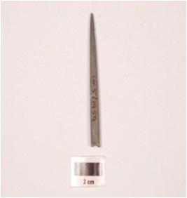 | Description / विवरण | Fragment of a stone point slightly broken at one end, pointed at other end and rectangular in section, smooth surface. |