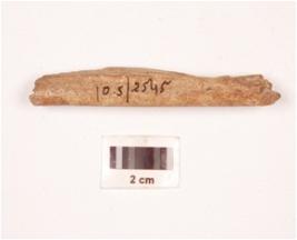 | Description / विवरण | Fragment of a bone point with rectangular in section, slightly broken both ends, polished both sides and smooth surface. |