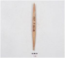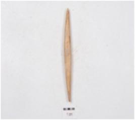 | Description / विवरण | A bone point with circular cross section, tapering towards both ends, and polished surface. |