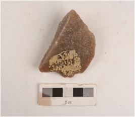 | Description / विवरण | A stone side scraper with flake scars on surface along with the cortex and irregular retouching on surface. |
