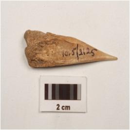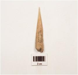 | Description / विवरण | A bone point with tapered one end, flat surface, well polished, pointed one end other end thick and rectangular in section. |