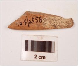 | Description / विवरण | Fragment of a bone point with plano-convex in section, smooth surface, slightly broken both ends and polished. |