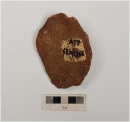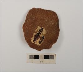 | Description / विवरण | A side scraper on end struck flake with prominent bulb on ventral, a ridge on dorsal and partly retouched on left cutting edge. |