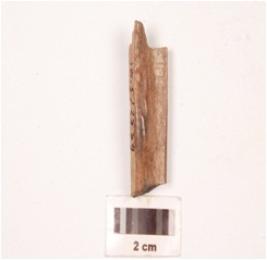 | Description / विवरण | Fragment of a bone unidentified object triangular in section, slightly broken both end and polished surface, probably part of a point . |