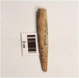 | Description / विवरण | A bone point with tapered one end, pointed one end slightly damaged, oval in section, mended middle surface and polished. |