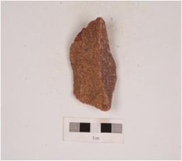 | Description / विवरण | A chopping tool made on quartzite with flake scars on one side and cortex partly intact. |