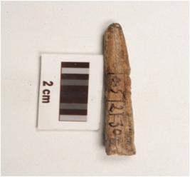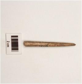 | Description / विवरण | Fragment of bone point with polished surface, circular cross section, pointed end slightly damaged and other end broken. |