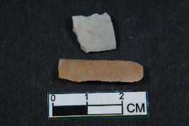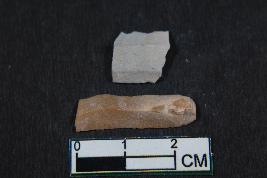 | Description / विवरण | Fragments of blades having one dorsal ridge in larger one with bulb of percussion and two dorsal ridges in smaller one. They have smooth surface. |